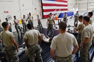A bus carrying 924th Fighter Group Airmen from Davis-Monthan Air Force Base, Arizona from a KC-10 to the 301st Rescue Squadron to begin their annual tour July 15 on Patrick Air Force Base, Fla. Approximately 200 Airmen from the 924th will conduct their annual tour at Patrick AFB, allowing the unit