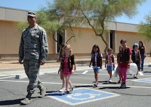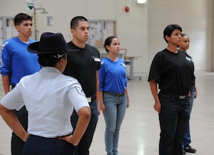 Tech. Sgt. Terri Taylor-Trapp and Tech. Sgt. Tammanica Rogers, 433rd Training Readiness Squadron Reserve Training instructors, visiting from Lackland Air Force Base, talk to members of the 944th Fighter Wing Development and Training Flight about what it will be like during basic training. The D&TF