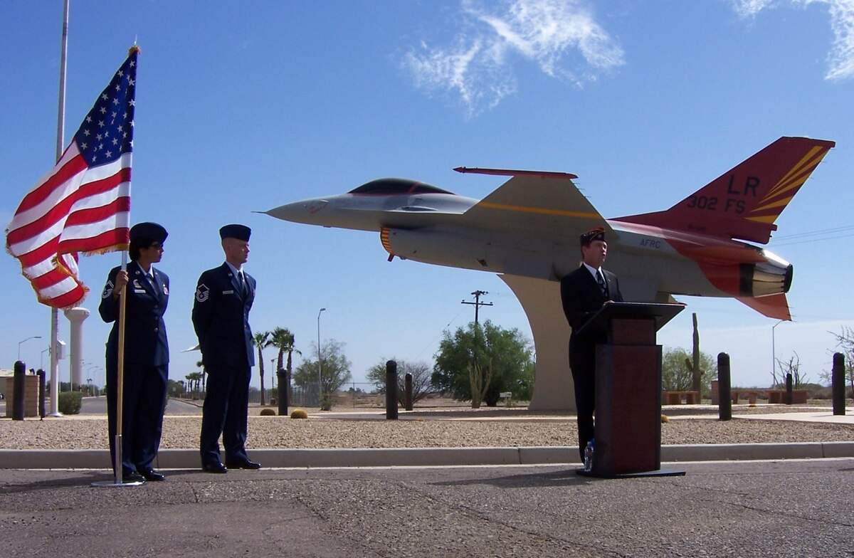 Brig. Gen. Thomas Harwood, III, Mobilization Assistant to the Commander, 13th Air Force, Pacific Air Forces and former member of the 944th Fighter Wing, administers the oath of enlistment during a mass enlistment ceremony Oct. 5 at the 944th Fighter Wing’s Tuskegee Airman Airpark. The ceremony was part of an Air Force Reserve coast-to-coast enlistment initiative to kick off the new fiscal year recruiting effort. (U.S. Air Force photo/Lt. Col. David Thoreson)