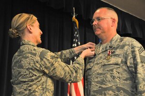 Friends, family and Citizen Airmen filled every seat inside Club 56’s ballroom August 6, 2016 as Chief Master Sgt. Anthony Harback, 944th Civil Engineer Squadron chief enlisted manager, retired from the Air Force Reserves.Harback kept a stoic pose during a retirement ceremony in his honor as the